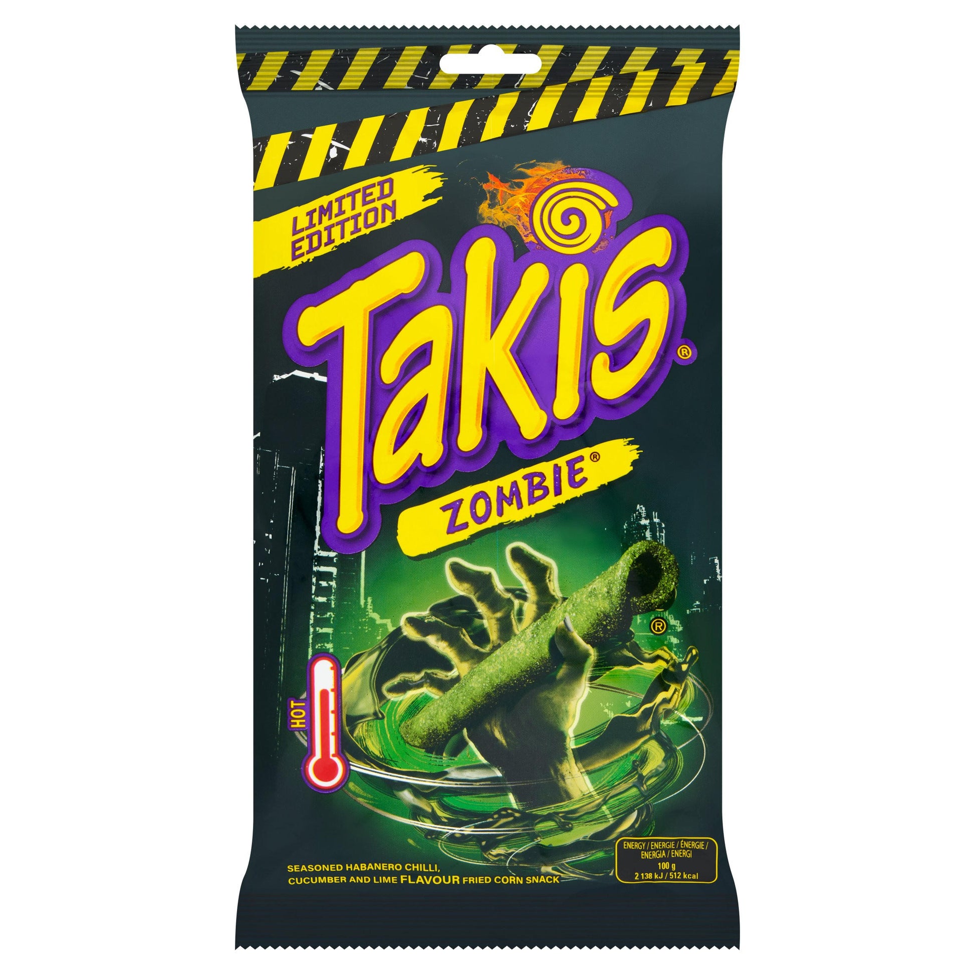 Takis Zombie Habanero & Cucumber Tortilla Crisps (100g) bring a daring twist to the bold Takis lineup, combining fiery habanero heat with the cool, refreshing taste of cucumber. Rolled into Takis’ signature crunchy tortilla shape, these crisps deliver an intense flavour experience that balances spice and freshness in every bite.